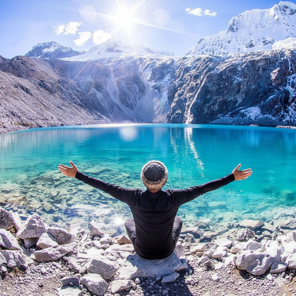 Trekking a la Laguna 69 (lago glaciar de color turquesa a 4,600m).